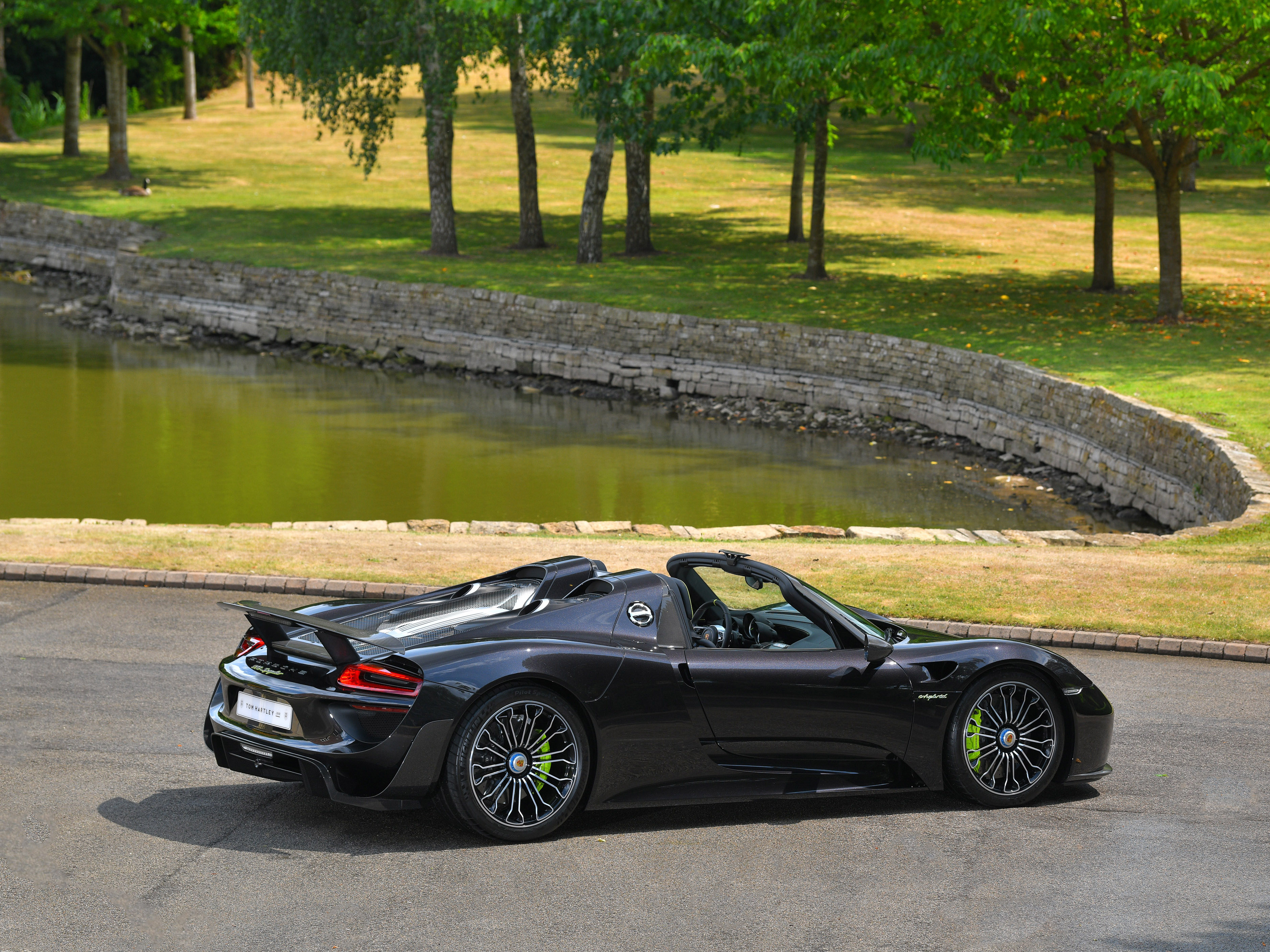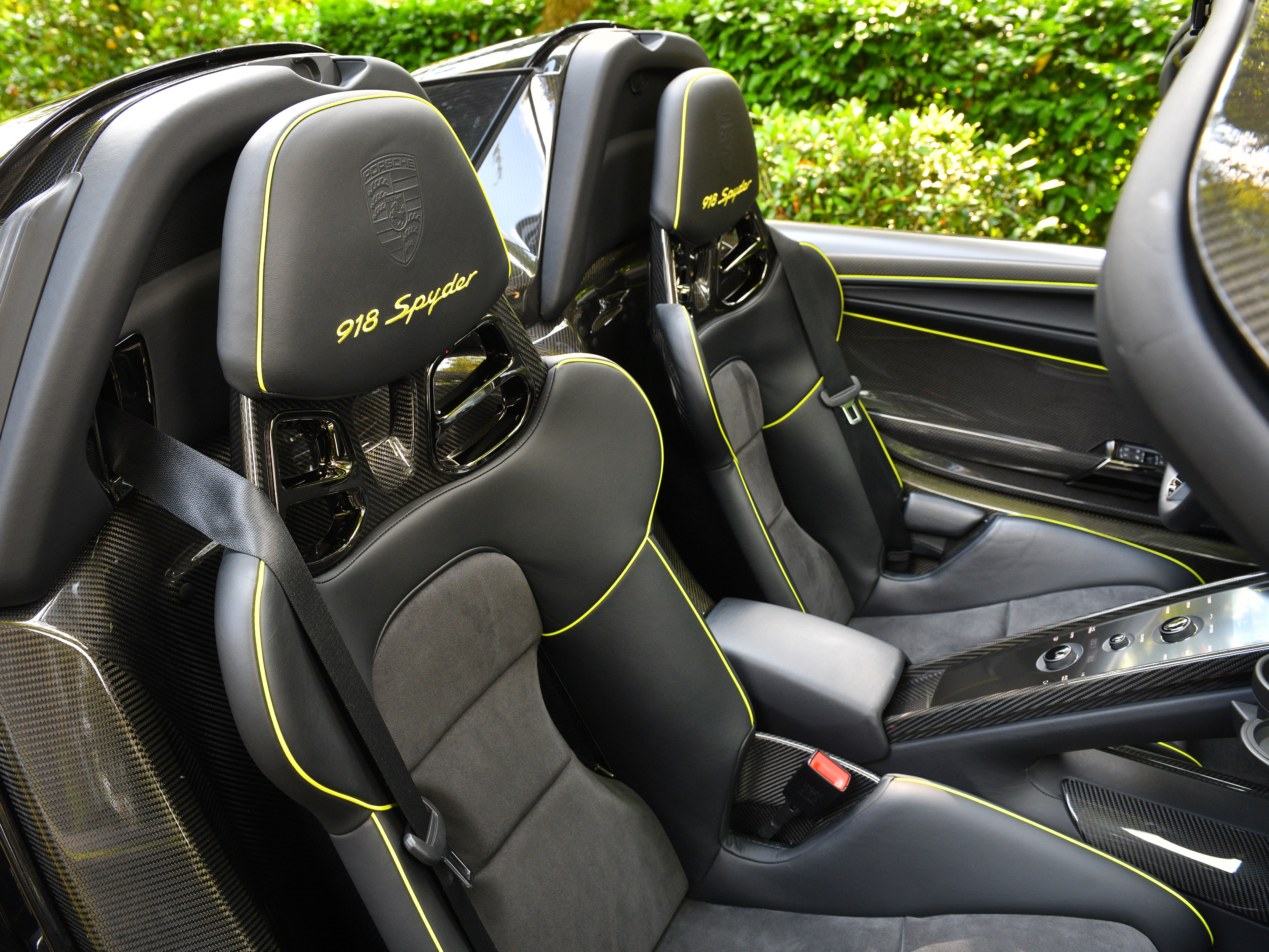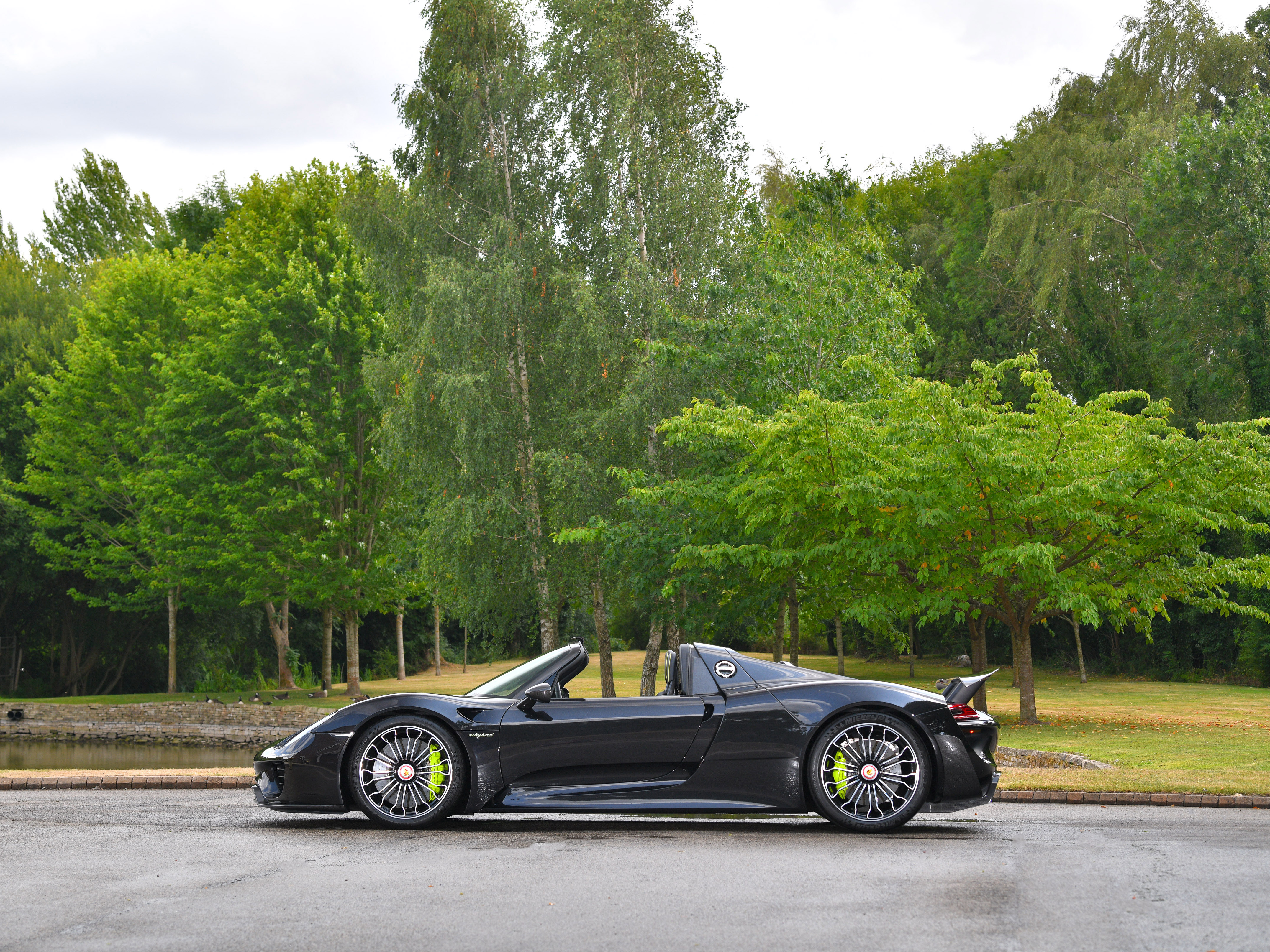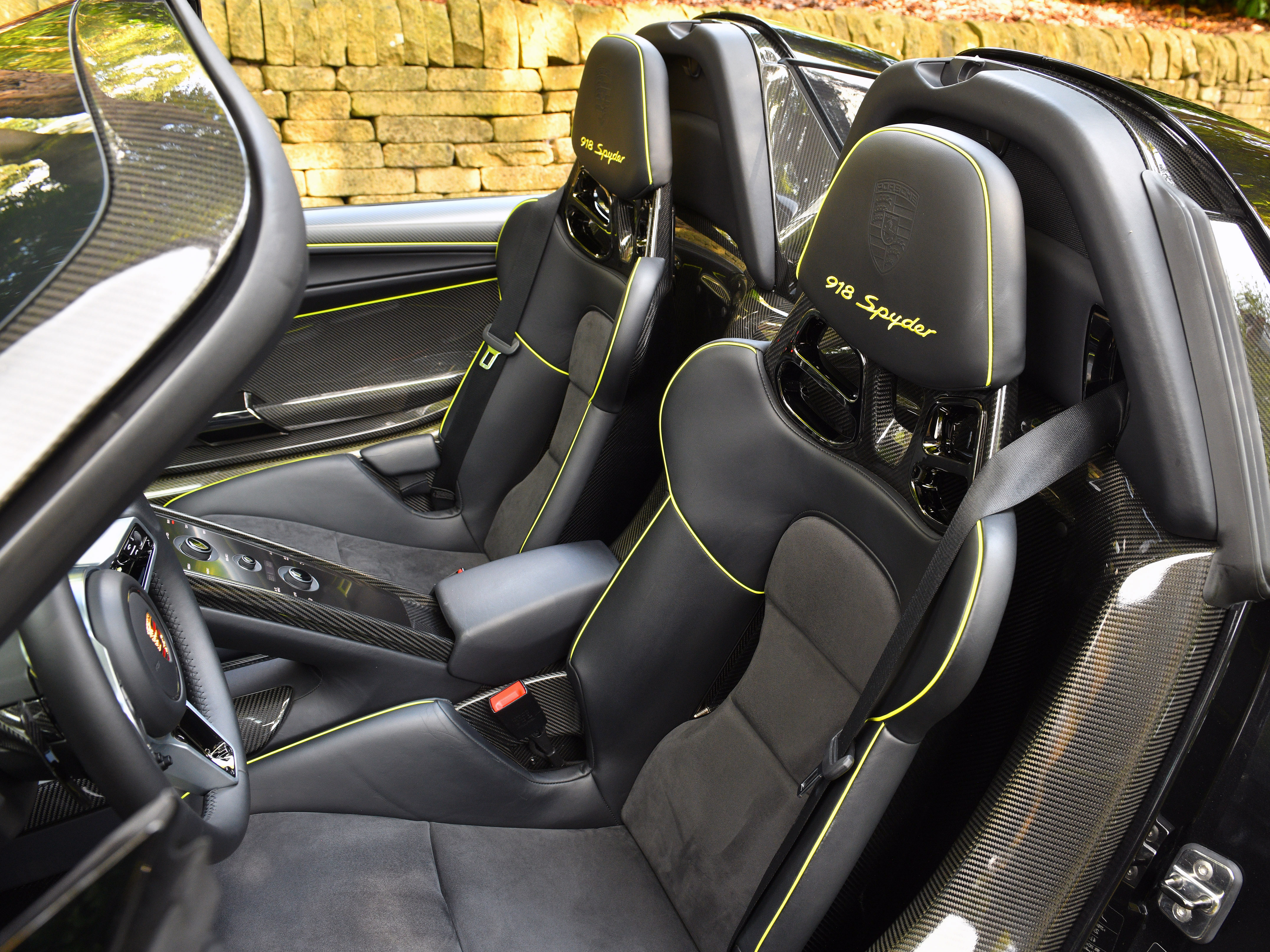 This is an even rarer UK supplied example that also boasts low mileage from new. In addition to the Weissach Package, this car further benefits from a fantastic array of factory options including: front end lifting system, sports seat for driver, sports seat for passenger, Alcantara inserts on the driver and passenger seats, passenger seat height adjustment, additional seat cushion, seat belts in black, Alcantara trimmed steering wheel, visible carbon-fibre interior trim, glare reducing interior trim, air-conditioning, Burmester® high-end surround system, DAB digital radio, universal multimedia interface, glove box, carbon floor mats with Acid Green piping, fire extinguisher, right-hand drive headlamps, anti-chip protective film, CDC battery charging (rapid charging), VTS (Vehicle Tracking System) & Porsche Car Connect, garage door opener (Homelink), and a cup holder. The first owner also requested to fit the standard-style 918 Spyder alloys rather than the wheels included in the Weissach Pack.