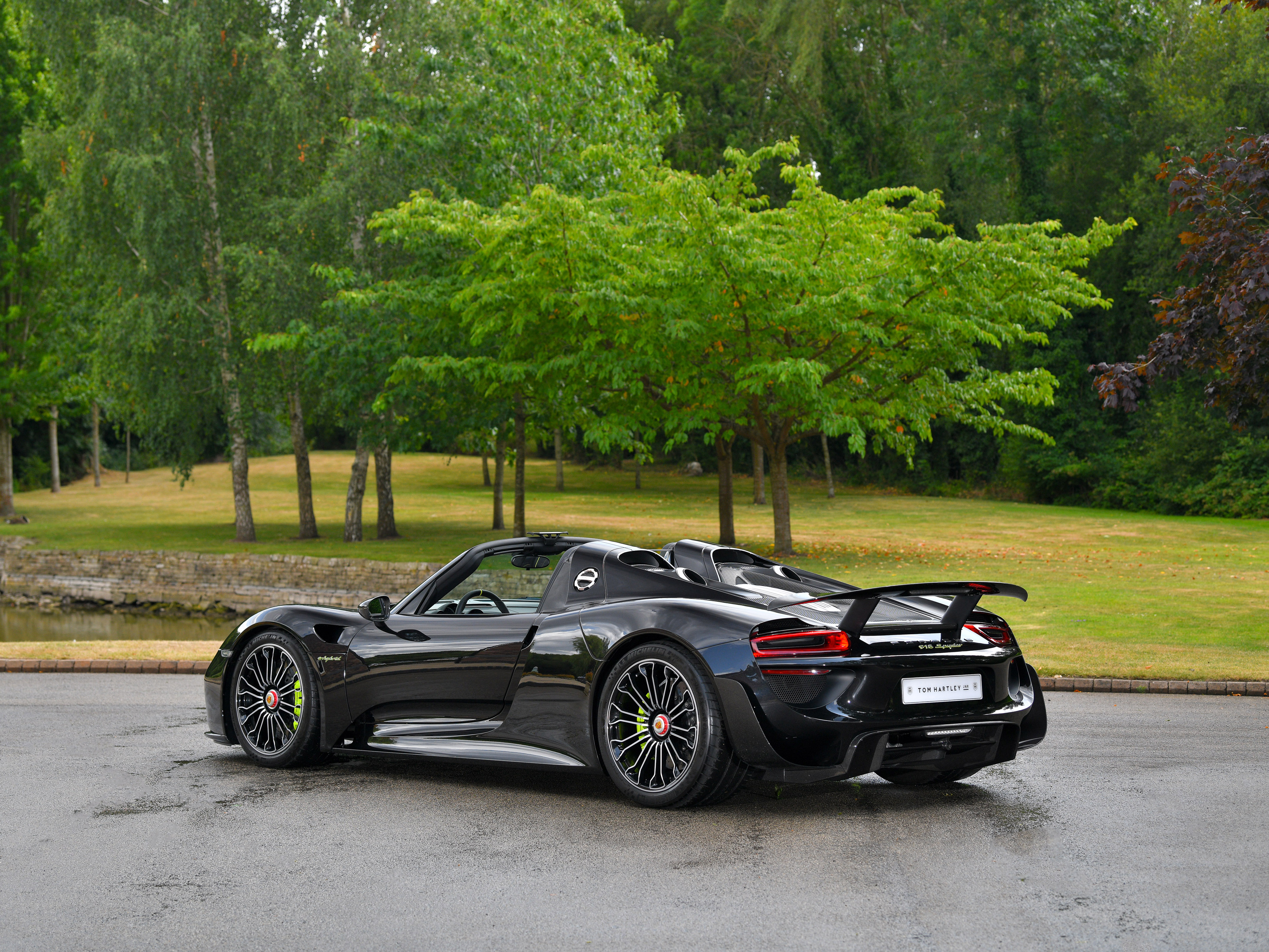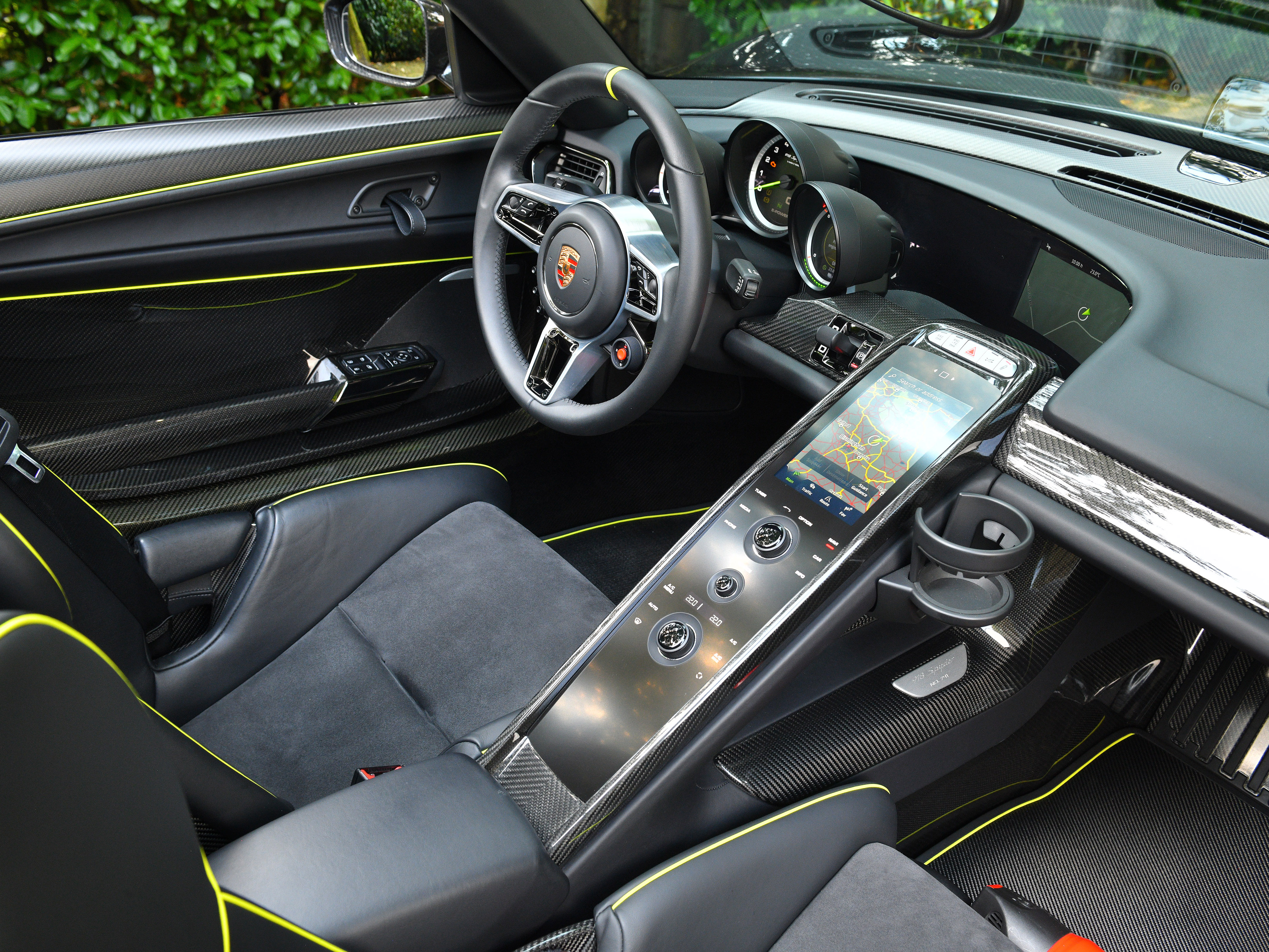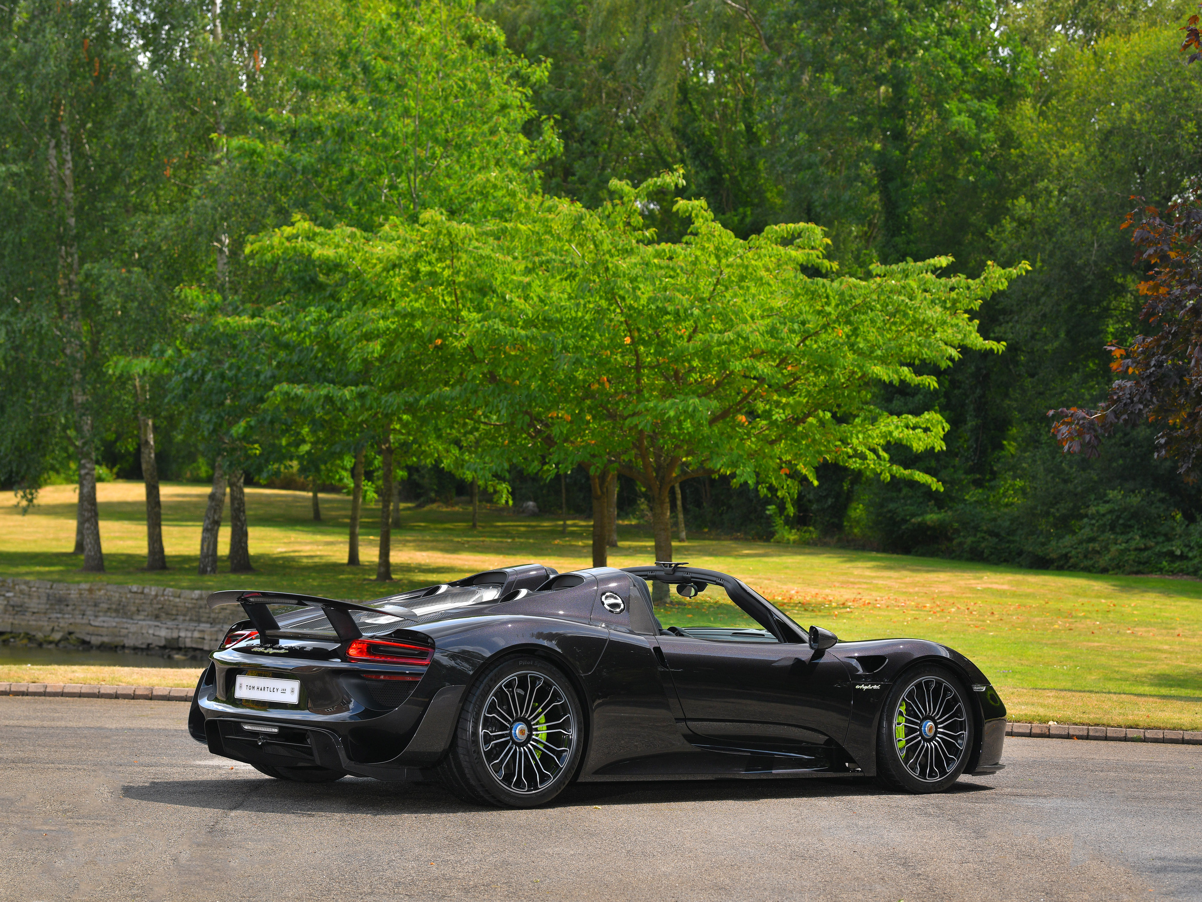 This is an even rarer UK supplied example that also boasts low mileage from new. In addition to the Weissach Package, this car further benefits from a fantastic array of factory options including: front end lifting system, sports seat for driver, sports seat for passenger, Alcantara inserts on the driver and passenger seats, passenger seat height adjustment, additional seat cushion, seat belts in black, Alcantara trimmed steering wheel, visible carbon-fibre interior trim, glare reducing interior trim, air-conditioning, Burmester® high-end surround system, DAB digital radio, universal multimedia interface, glove box, carbon floor mats with Acid Green piping, fire extinguisher, right-hand drive headlamps, anti-chip protective film, CDC battery charging (rapid charging), VTS (Vehicle Tracking System) & Porsche Car Connect, garage door opener (Homelink), and a cup holder. The first owner also requested to fit the standard-style 918 Spyder alloys rather than the wheels included in the Weissach Pack.