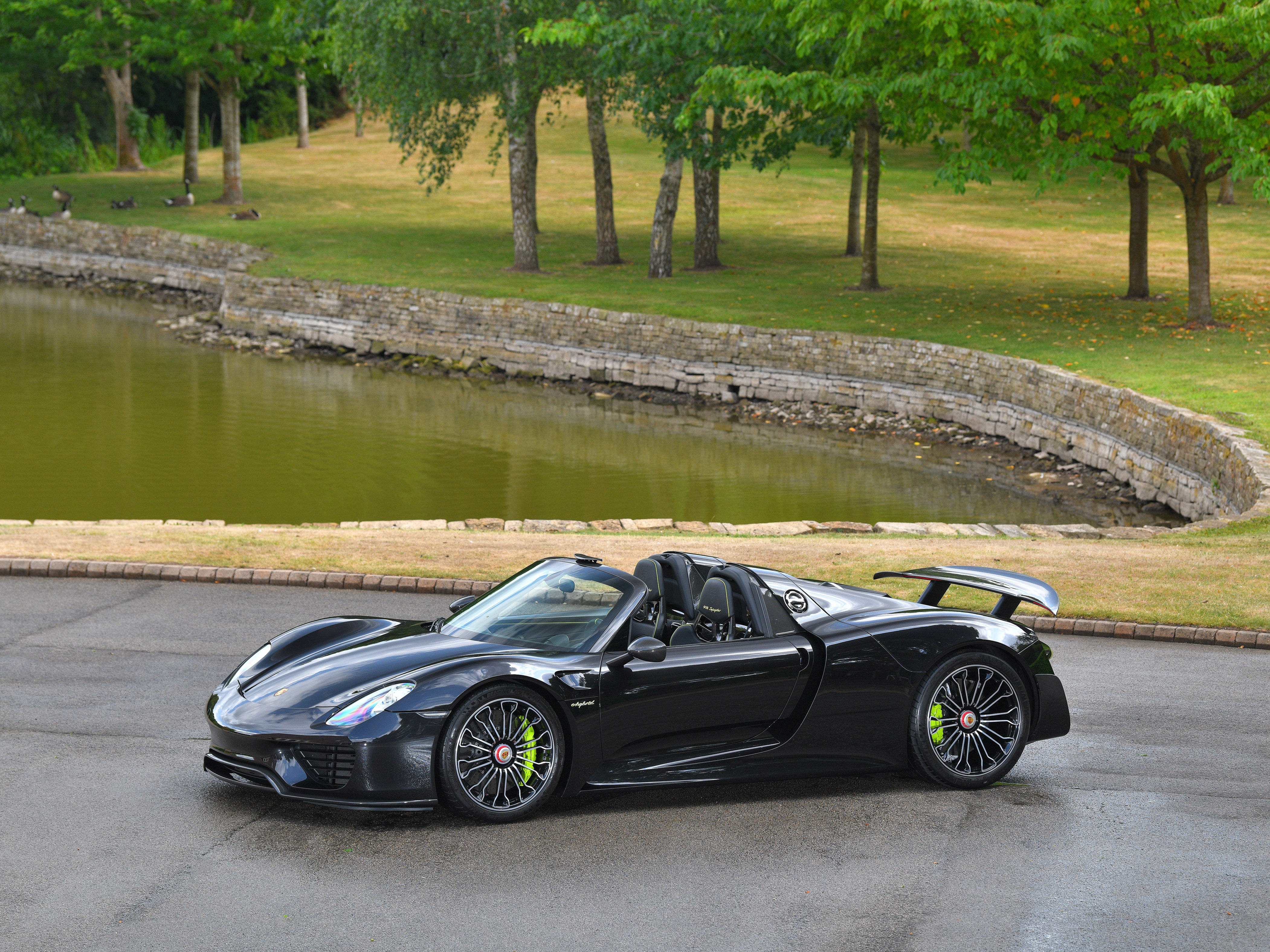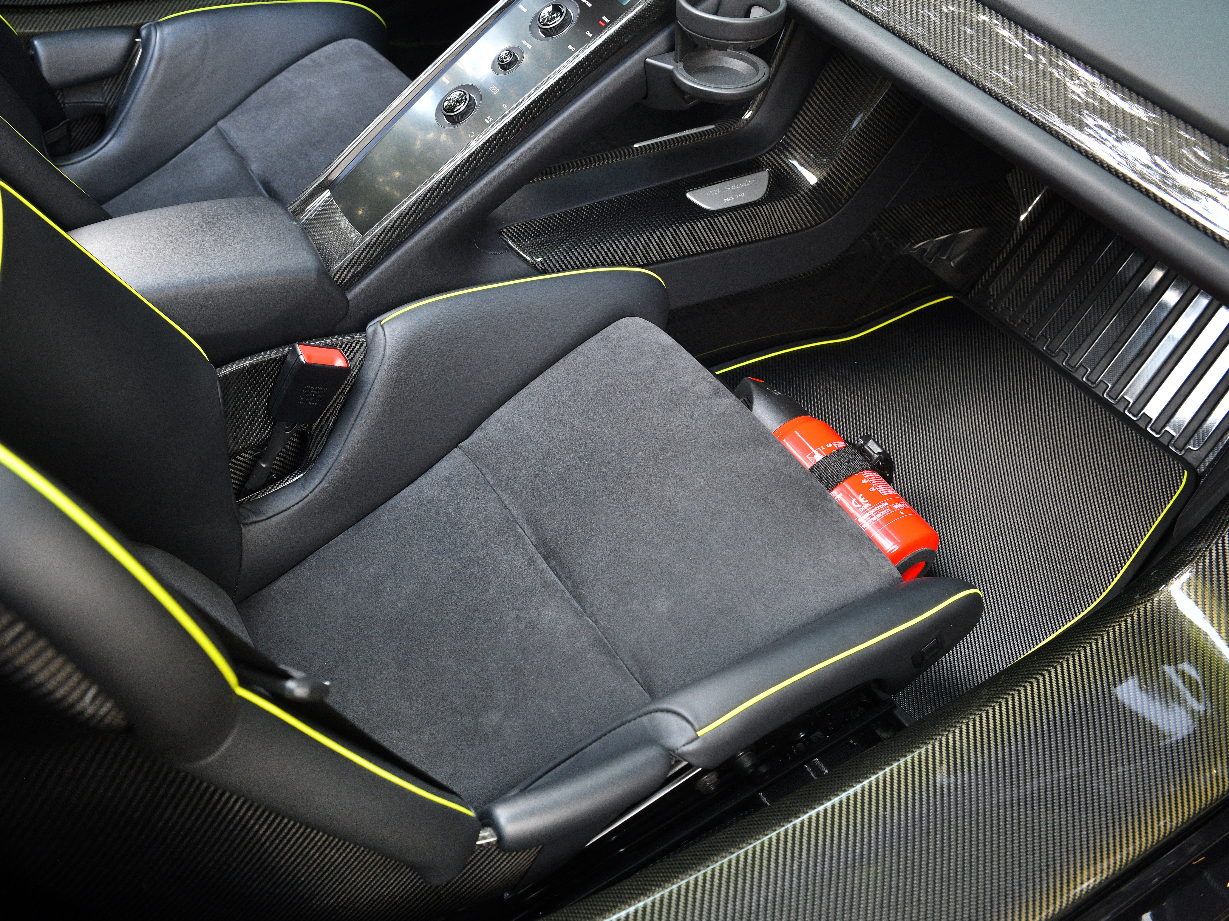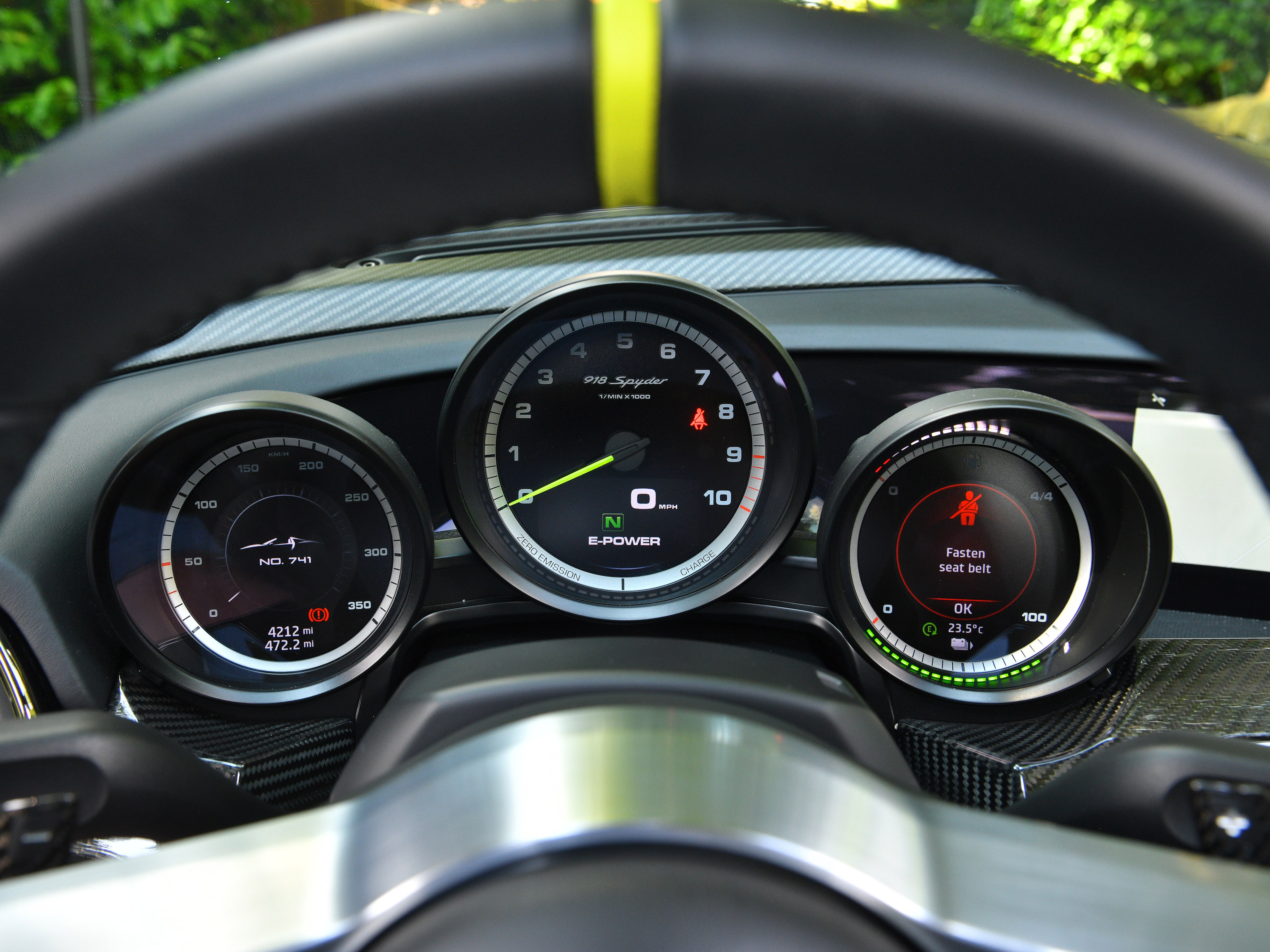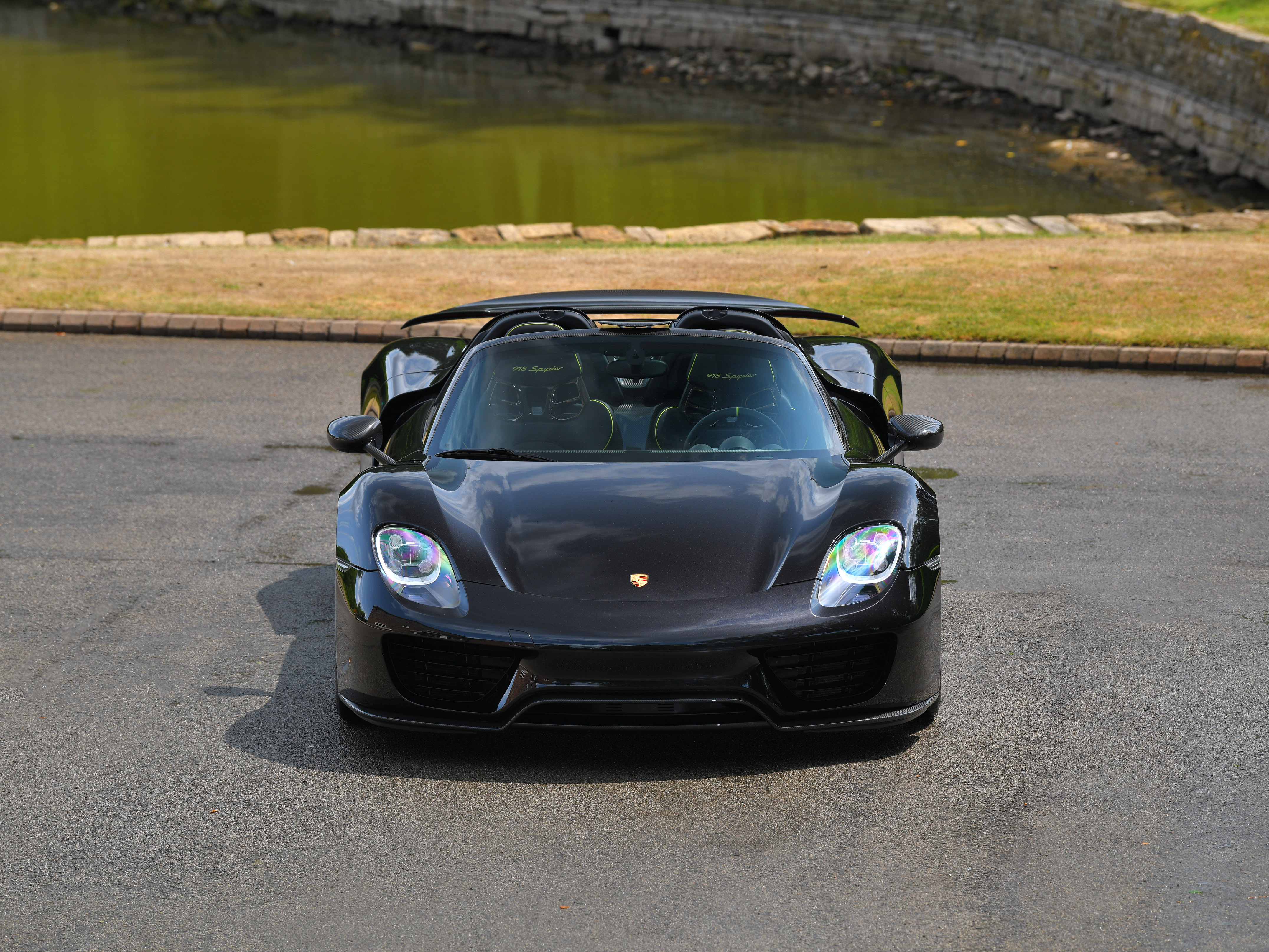 This is an even rarer UK supplied example that also boasts low mileage from new. In addition to the Weissach Package, this car further benefits from a fantastic array of factory options including: front end lifting system, sports seat for driver, sports seat for passenger, Alcantara inserts on the driver and passenger seats, passenger seat height adjustment, additional seat cushion, seat belts in black, Alcantara trimmed steering wheel, visible carbon-fibre interior trim, glare reducing interior trim, air-conditioning, Burmester® high-end surround system, DAB digital radio, universal multimedia interface, glove box, carbon floor mats with Acid Green piping, fire extinguisher, right-hand drive headlamps, anti-chip protective film, CDC battery charging (rapid charging), VTS (Vehicle Tracking System) & Porsche Car Connect, garage door opener (Homelink), and a cup holder. The first owner also requested to fit the standard-style 918 Spyder alloys rather than the wheels included in the Weissach Pack.