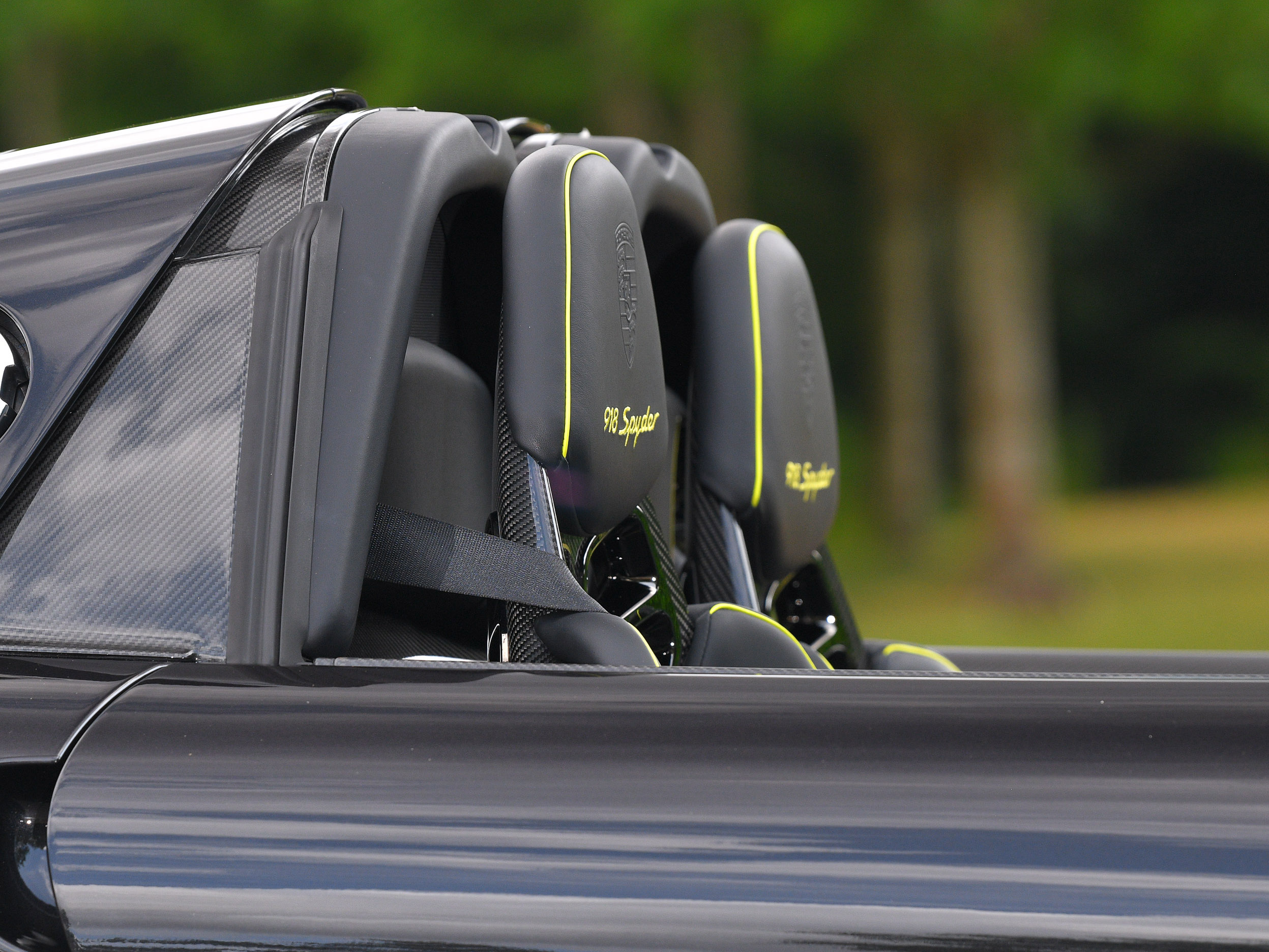 Porsche class the Weissach cars as having “a more performance-oriented finish“, shaving an impressive 41kg off the weight compared to a standard 918 Spyder, by using titanium chassis bolts, lighter brakes and plenty of carbon fibre. It can hit 60 mph in 2.5 seconds, reach 120 mph in just 7.2 seconds and on to an incredible top speed of 214 mph. Improved aerodynamics of the Weissach Package also play a contributing factor in the car’s enhanced performance, provided by its front splitter, rear spoiler, roof panels and windscreen surround, all of which are constructed from visible carbon fibre.
